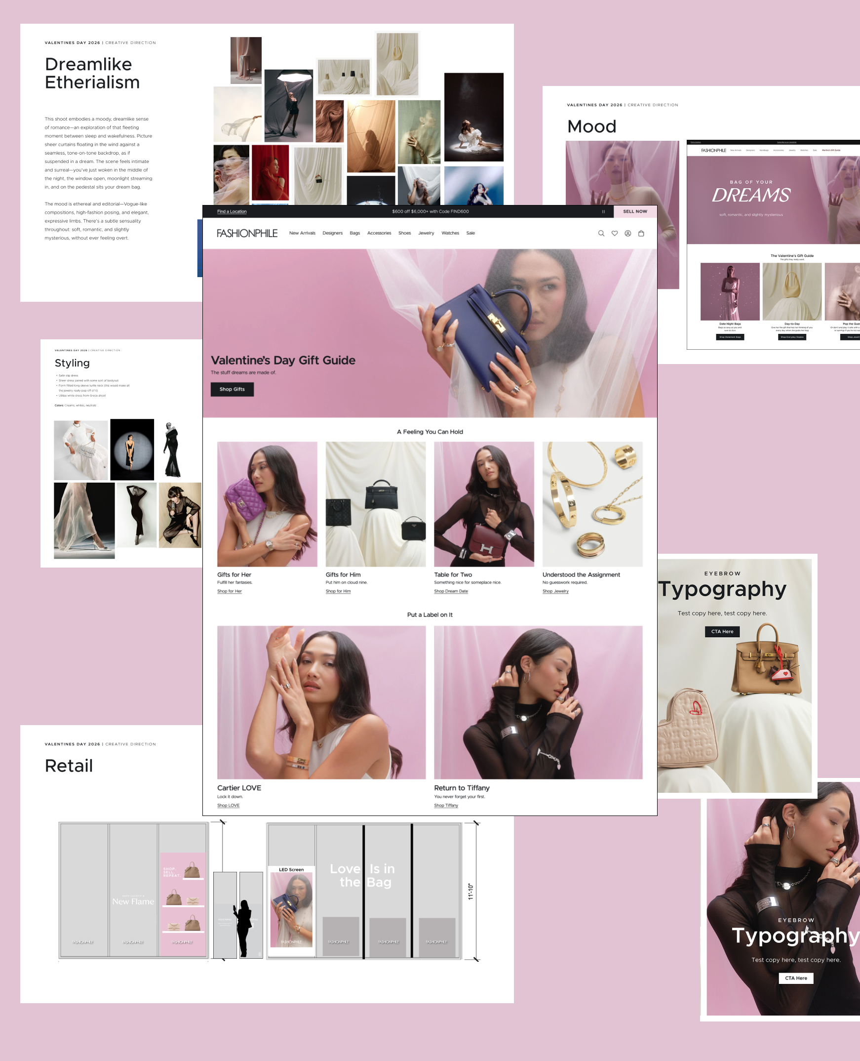 From concept to production I owned every aspect of the Valentine’s 2026 Campaign. With the initial concept being Dreamlike Etherialism I wanted to evoke a dreamlike sense of romance. Picture sheer curtains floating in the wind against a seamless, tone-on-tone backdrop, as if suspended in a dream.